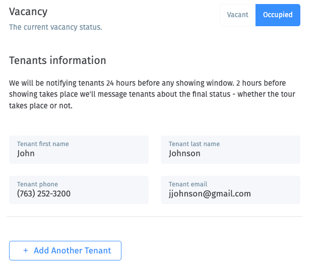 Mark the property as "Occupied" and add the tenant(s) contact details