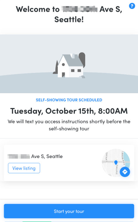 Upon arrival at the property, prospects will be prompted to click on a "Start Tour" button.