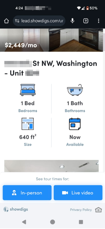 Include an appealing photo that clearly establishing the option for video tours among the marketing photos. This can significantly enhance prospects' understanding of this feature, thereby increasing the likelihood of scheduling a tour for those who cannot attend in-person.